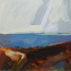 "Outside I paint in oil on boards 30cm square. Indoors larger works of 70cm and 1metre squared are in Golden brand acrylic. Although working on a larger scale gives the opportunity to push a painting further over a longer period of time, it is important to me not to end up with an overworked result.